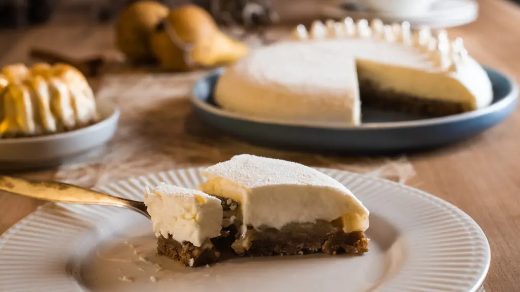 Birnen-Cheesecake mit Spekulatiusboden