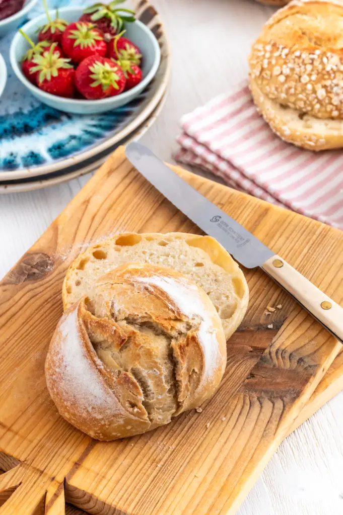 Ein gutes Brötchen ist für mich wenn es außen eine dünne Kruste hat und innen fluffig weich ist. Die Krume muss saftig sein und dennoch stabil genug, dass man eine Butter darauf verstreichen kann und nicht klumpig wird. Außerdem sollte das Brötchen nicht schwer im Magen liegen. Damit das nicht passiert, ist eine lange Ruhezeit von Vorteil.