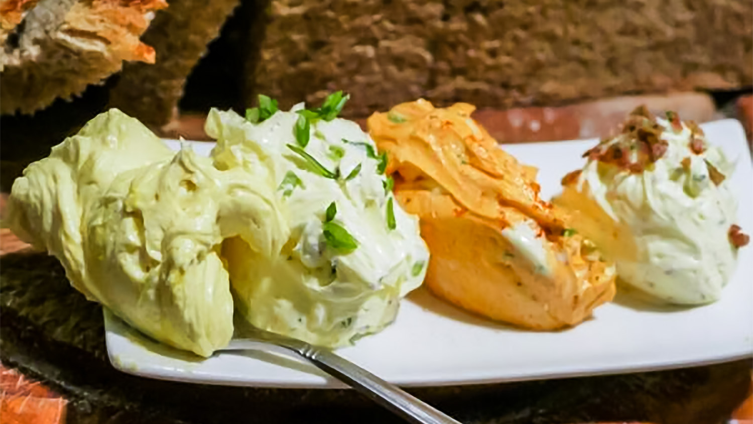 Tomatenmark und geräucherten Paprika als herzhafte Variante. Kurkuma, geriebenem Ingwer und etwas Honig oder pürierte Mango hat was Exotisches. Geschnittene Paprika und Chili für eine süße Schärfe oder gebratene Pilzen mit etwas Petersilie und Zitrone passt zu gegrilltem ganz gut. Microgreens bringen einige Vitamine dazu und sind optisch ein schöner Hingucker. Es gibt nichts Besseres zu einem frischen Brot als geschlagene Butter und ein paar Kräuter oder leckere Gewürze.