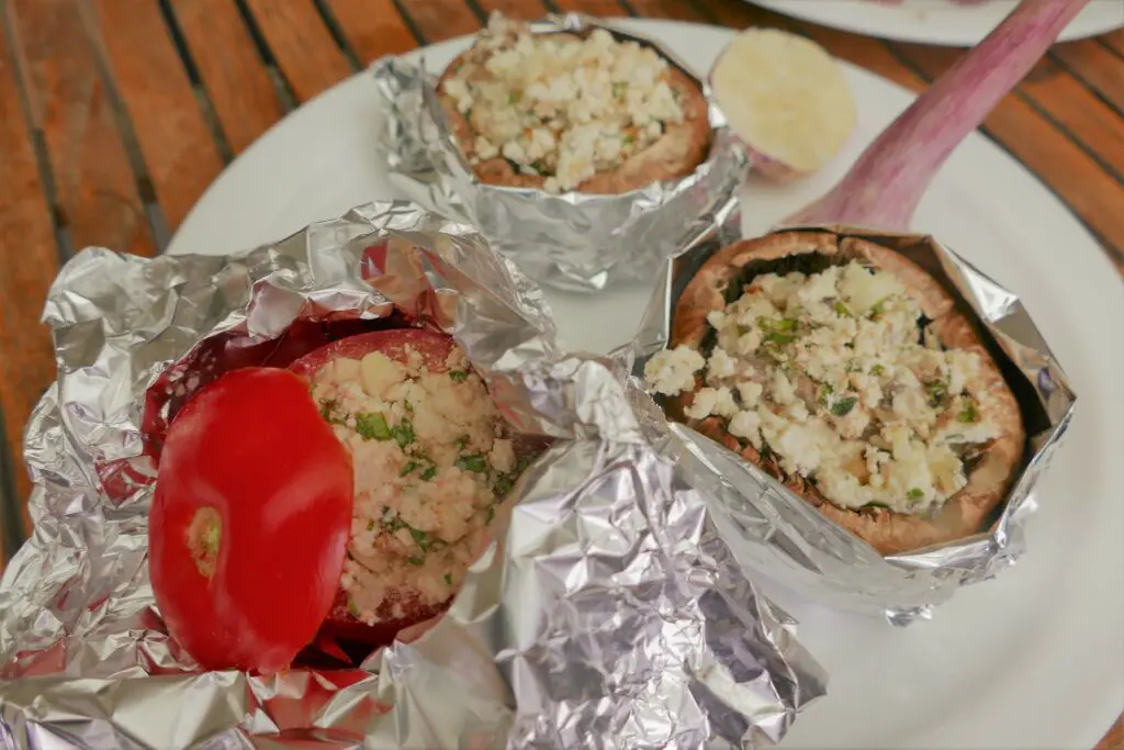 - Die Mischung in das ausgehöhlte Gemüse geben. Das Gemüse in eine eingeölte Alufolie geben und einschlagen. Evtl. komplett verschließen damit das Gemüse durchgart.