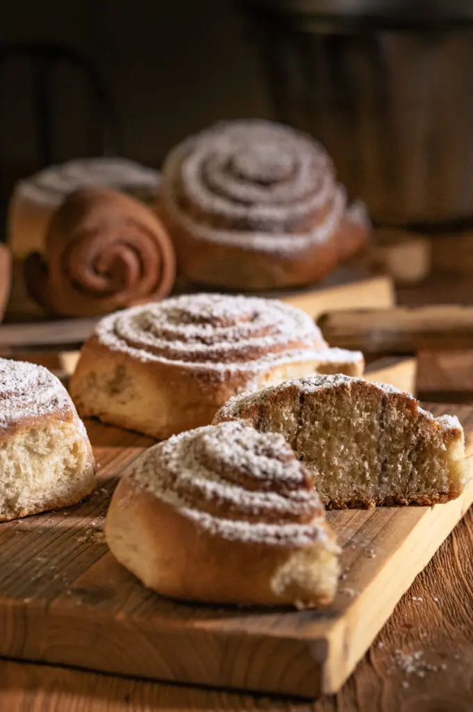 Klassisch werden Cinnamon Rolls mit einem Frischkäsefrosting verziert, aber es gibt auch schwedische Kanelbullar, die mit Puderzucker bestreut werden. Es gibt sogar einen „Tag der Zimtschnecke“, das ist der 4. Oktober. Wie Du siehst, wird es je nach Land unterschiedlich gehandhabt. Ich liebe beide Versionen und je nachdem für wen ich sie backe, verwende ich das Eine oder das Andere! Wie liebst Du sie? Verrate mir das gerne in den Kommentaren.
