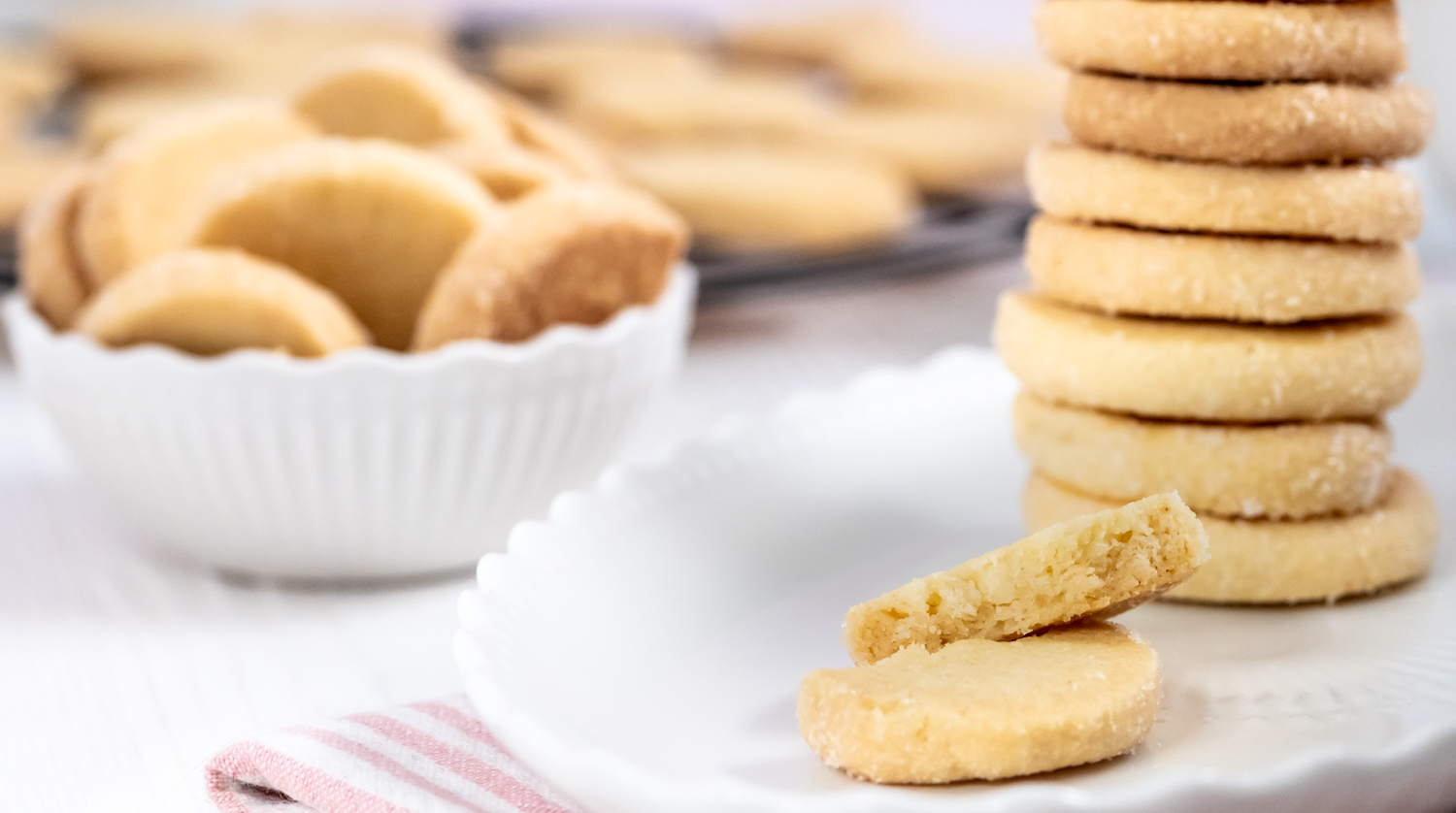 Diese einfache Sandgebäck gehört auch zu dem Teegebäck, dass man das ganze Jahr über beim Bäcker oder in der Konditorei bekommt. Es ist knuspig und zergeht auf der Zunge….