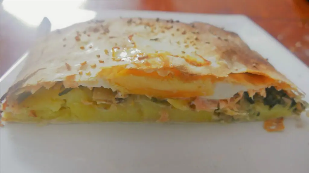Geht das? Ja, das funktioniert wunderbar. Ein herzhafter Strudel für einen gemütlichen Abend. Mit Kartoffel, einem leckeren Gemüse und etwas Lachs. Den hatten wir noch übrig und ganz ehrlich, der Strudel war sowas von lecker… Der Clou ist das Spiegelei. Mangold an sich schmeckt recht erdig, was nicht jeder mag aber mit dem Ei wird es richtig lecker. Wer kein Mangold mag, der kann ihn durch Spinat ersetzen.