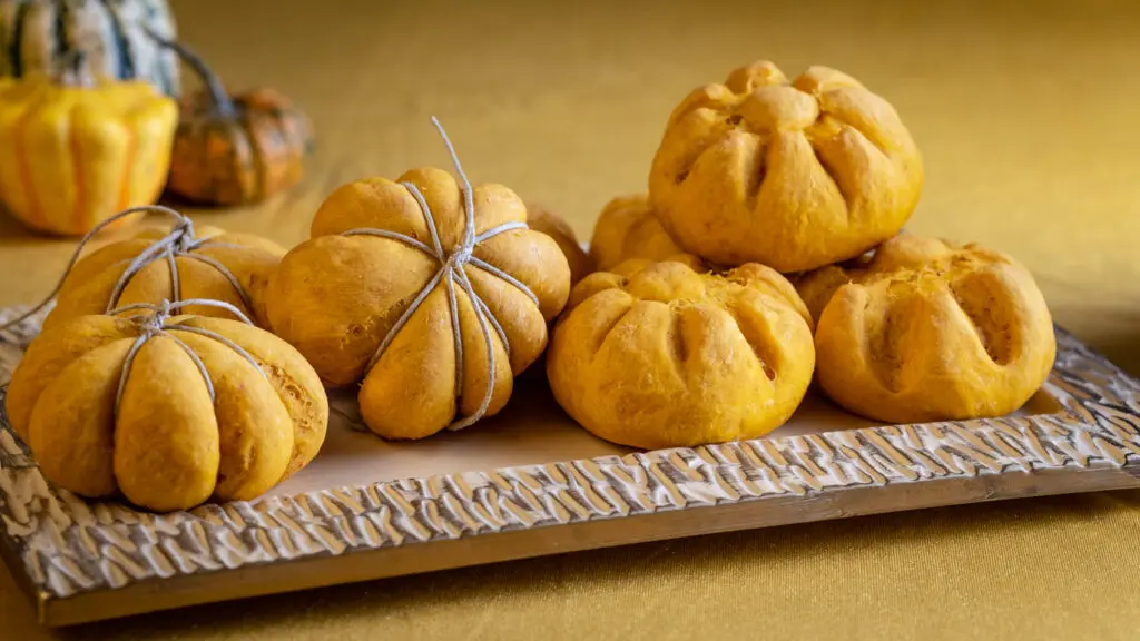 Kürbisbrötchen in Kürbisform mit Hokkaido