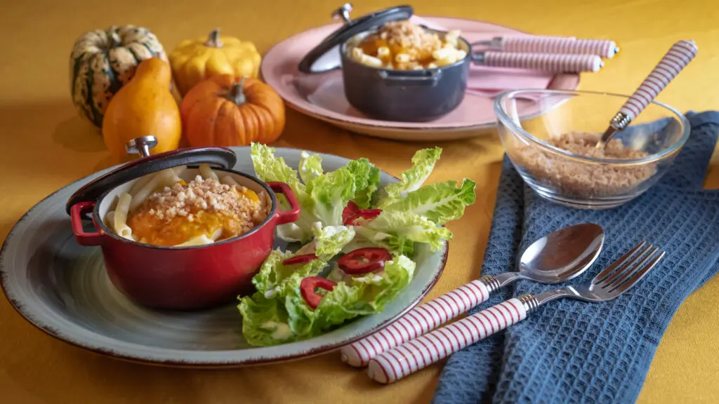 Wie versprochen kommt hier das nächste Kürbisrezept, eine Kürbissauce à la Mac and Cheese. Kürbissuppe kennt jeder, obwohl es auch hier viele unterschiedliche Versionen gibt, aber meine Kürbissauce ist so lecker wie die bekannte Käsesoße für Mac and Cheese. Das Pastagericht wird mit Makkaroni und viel herzhafter Käsesoße zubereitet. Doch für meine Kürbissauce brauchst du nicht einmal Käse und mit dem Topping obendrauf, ich nenne es Knusperkruste, wird es richtig krachig gut.
