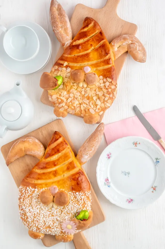 So forme ich meine Osterhasen aus Hefeteig