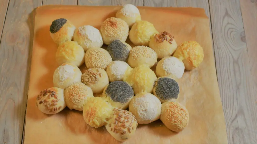 Ganz klar, dass du diese Brötchen auch nach dem Backen sehr gut einfrieren kannst. Allerdings würde ich sie dann nicht mit Käse bestreuen. Der wird beim Aufbacken recht fest. Es gibt ja noch so viele Möglichkeiten, wie du sie belegen kannst. Sei es mit Sonnenblumenkernen, Mohn oder auch Sesam. Aber du kannst dir auch Kräuter klein schneiden, dazu Knoblauch und Gewürze. Diese mit Öl mischen und 5Minuten vor dem Backende, die Brötchen damit bestreichen und fertig backen lassen. Ein Traum kann ich dir sagen.