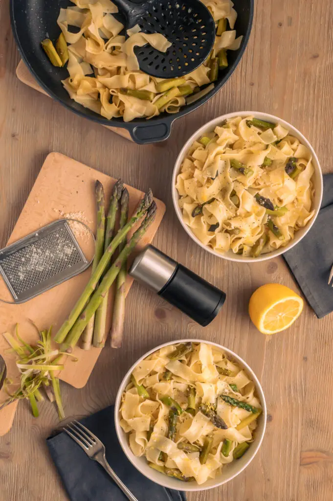 Eine super einfaches und schnelles Nudelgericht ist eine Pasta Alfredo, das ich dieses Mal zusammen mit einem grünen Spargel angerichtet habe. Schau Dir meine Rezeptidee an und lass Dich inspirieren.
