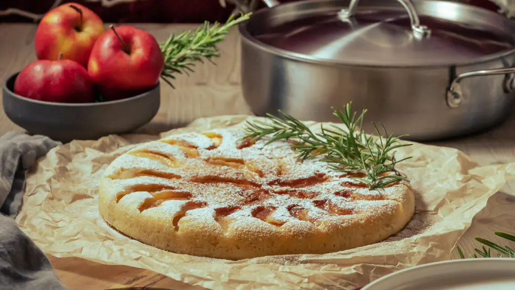 Mein einfaches Rezept für einen Pfannen-Apfelkuchen mit Rosmarin. Das Besondere daran ist nicht die Kombination aus Apfelkuchen mit Rosmarin, sondern dass der Kuchen vollständig in der Pfanne gebacken wird. Entdecke jetzt mein Rezept.