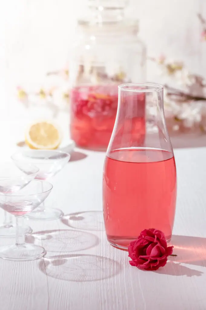 - Verschenke den Rosen Sirup in kleinen Flaschen. 200 bis 300 ml reichen locker, um 4 schöne Cocktails oder Aperitifs damit aufzupeppen.