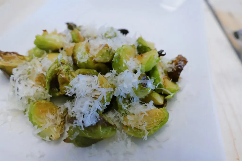 Der Rosenkohl sollte in gleich große Stücke geschnitten werden und nicht zu dicht bei einander liegen, damit der Rosenkohl knusprig werden kann. Beim Abschmecken sollte der Parmesan probiert werden. Je nachdem wie salzig der Parmesan ist, braucht der Rosenkohl etwas mehr oder weniger Salz. Man kann den Rosenkohl als Beilage, Snack oder als Teil einer Vorspeise servieren.