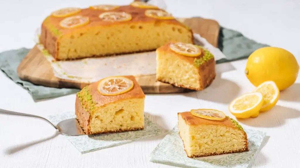 Der Zitronenkuchen vom Blech zählt zu den „trockenen Kuchen“ aber dieser Blechkuchen ist dennoch sehr saftig. Dafür sorgt ein Zitronensirup den Du ganz einfach herstellen kannst. Der Sirup ersetzt einen Zuckerguss, den man von vielen Varianten eines Zitronen Blechkuchen kennt Den Zuckerguss braucht mein Zitronenkuchen einfach nicht.