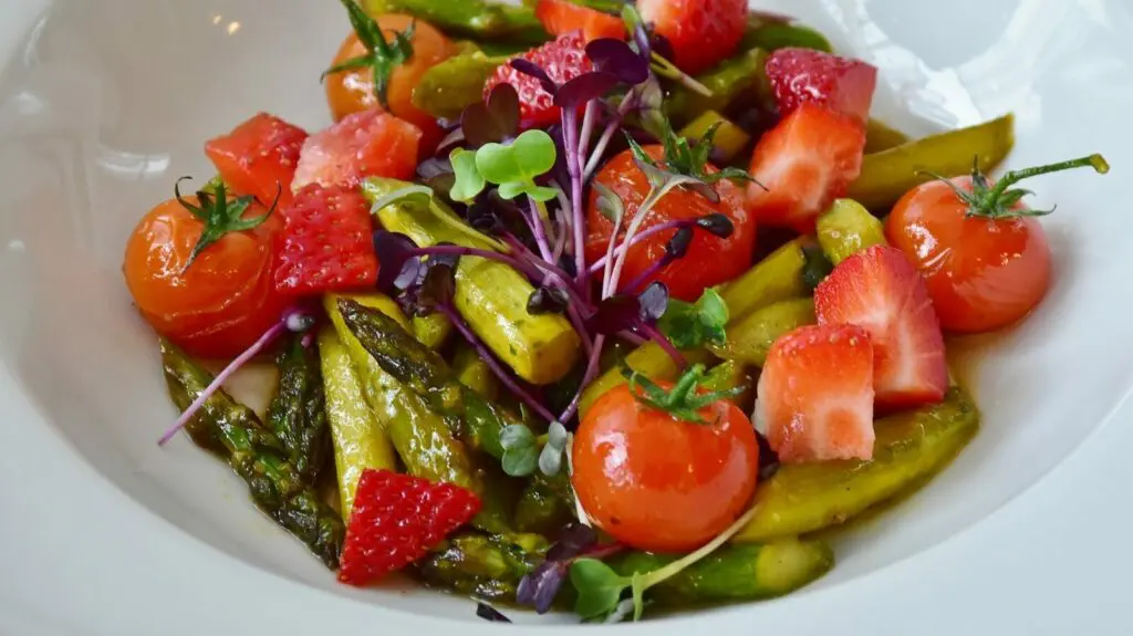 Spargelsalat mit Erdbeeren und Ofentomaten