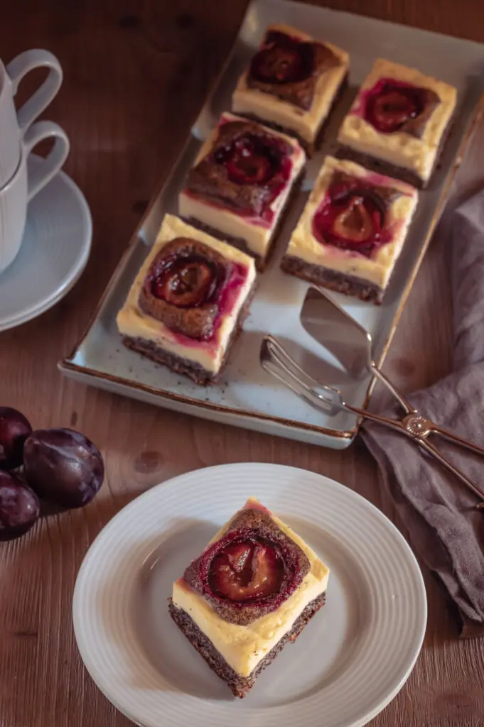 Dieser Kuchen besticht durch seine Leichtigkeit. Joghurt und Mohn ergänzen sich hier super. Der Joghurt sorgt für eine leichte Säure, was der Puddingmasse eine frische Note verleiht. Aber das Beste sind die Zwetschgen. Ohne sie wäre der Kuchen nur halb so gut. Mit diesem Kuchen leite ich den Herbst ein.