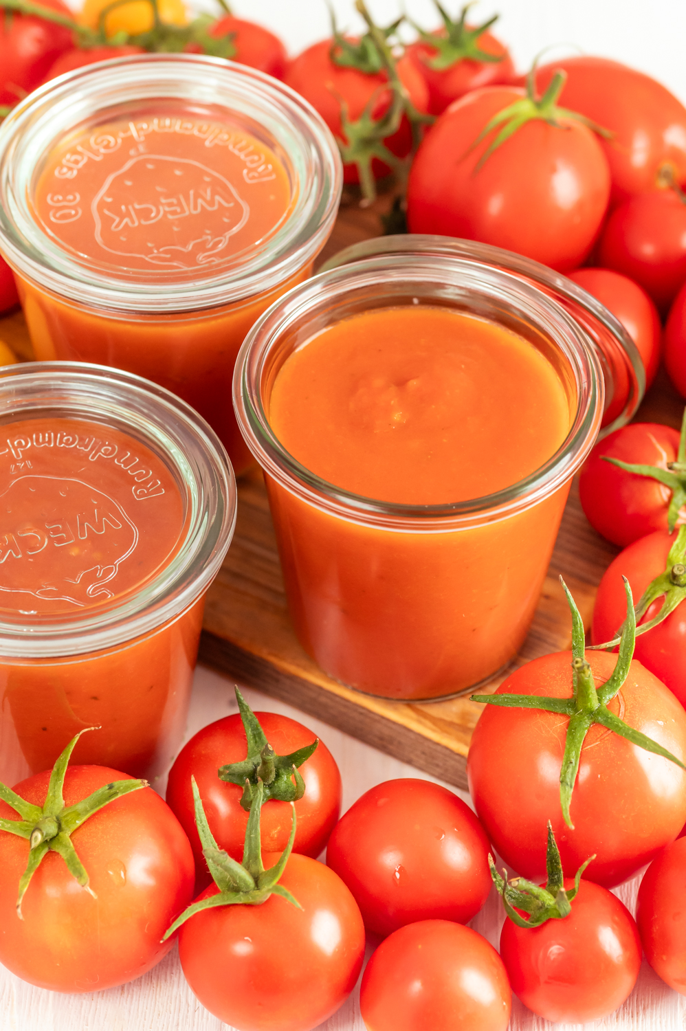 Je stärker Ihr die Sauce einreduziert, je weniger Platz nimmt sie im Vorrat ein. Das bedeutet später aber auch das Ihr weniger von der Sauce benötigt als von einer herkömmlich gekauften. Also darauf achten das Ihr die Sauce nicht in zu großen Gläsern abfüllt.