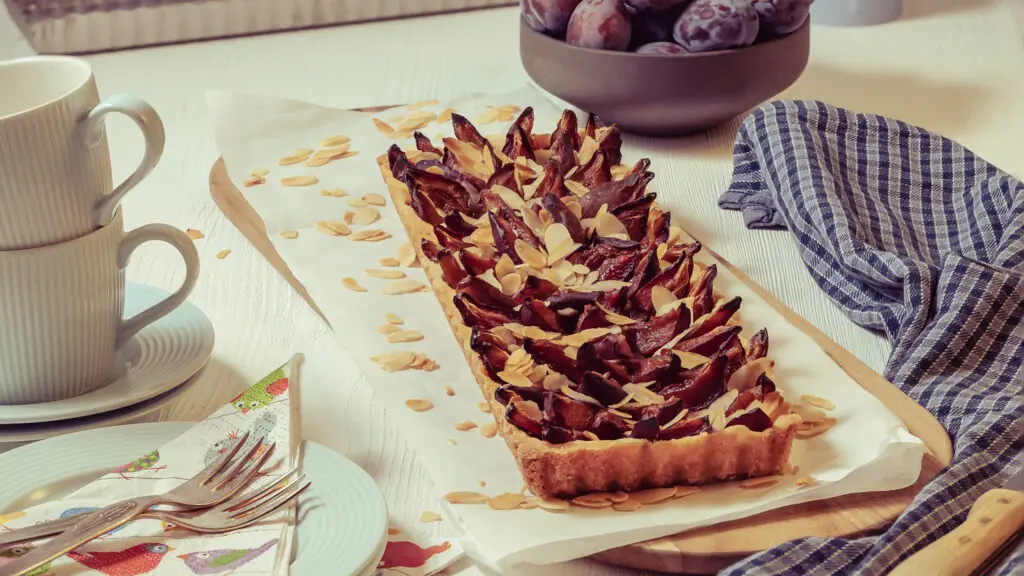 Dieses Rezept habe ich zum ersten Mal 2018 im Spätsommer veröffentlicht. Da begann gerade die Zwetschgenernte und da konnte ich nicht nein sagen. Der Anlass war der Besuch eines lieben Menschen, für den wollte ich etwas Besonders zubereiten. Tatsächlich fiel der guten Freundin sofort auf, dass der Boden dünn, aber nicht vom Saft der Zwetschge durchgeweicht war. Die leichte Mandelnote war eine ganz besondere Überraschung, sie rundet die Tarte ab. Sie fand nicht heraus, wo diese Mandelnote in der Tarte herkam. Diese kleinen, feinen Noten machen den Unterschied und lassen einen Klassiker zur Extraklasse werden.